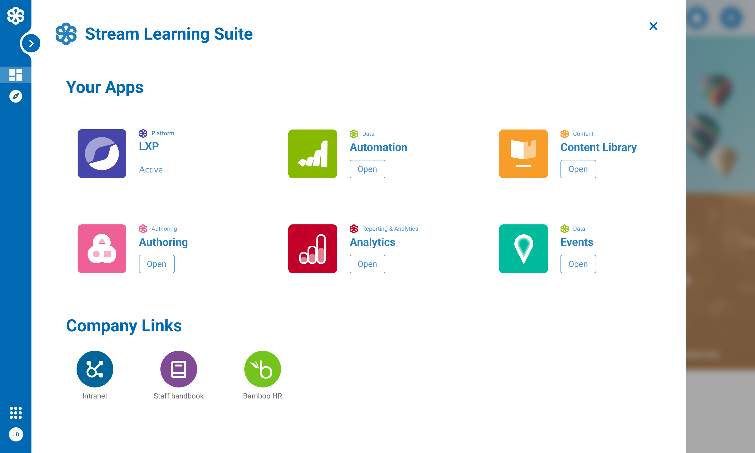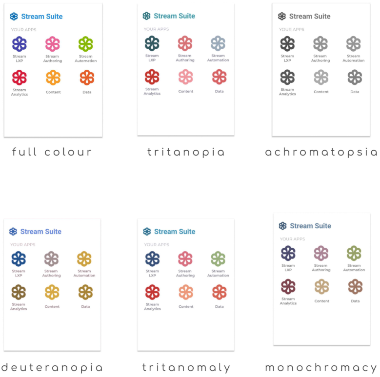 During the refresh, the decision was made to remove individual product branding and consolidate under a single name: the 'Learning Suite.' This included introducing a new suite-wide logo. However, this logo is now used across all applications and does not perform well—particularly when tested for colour-blind accessibility.