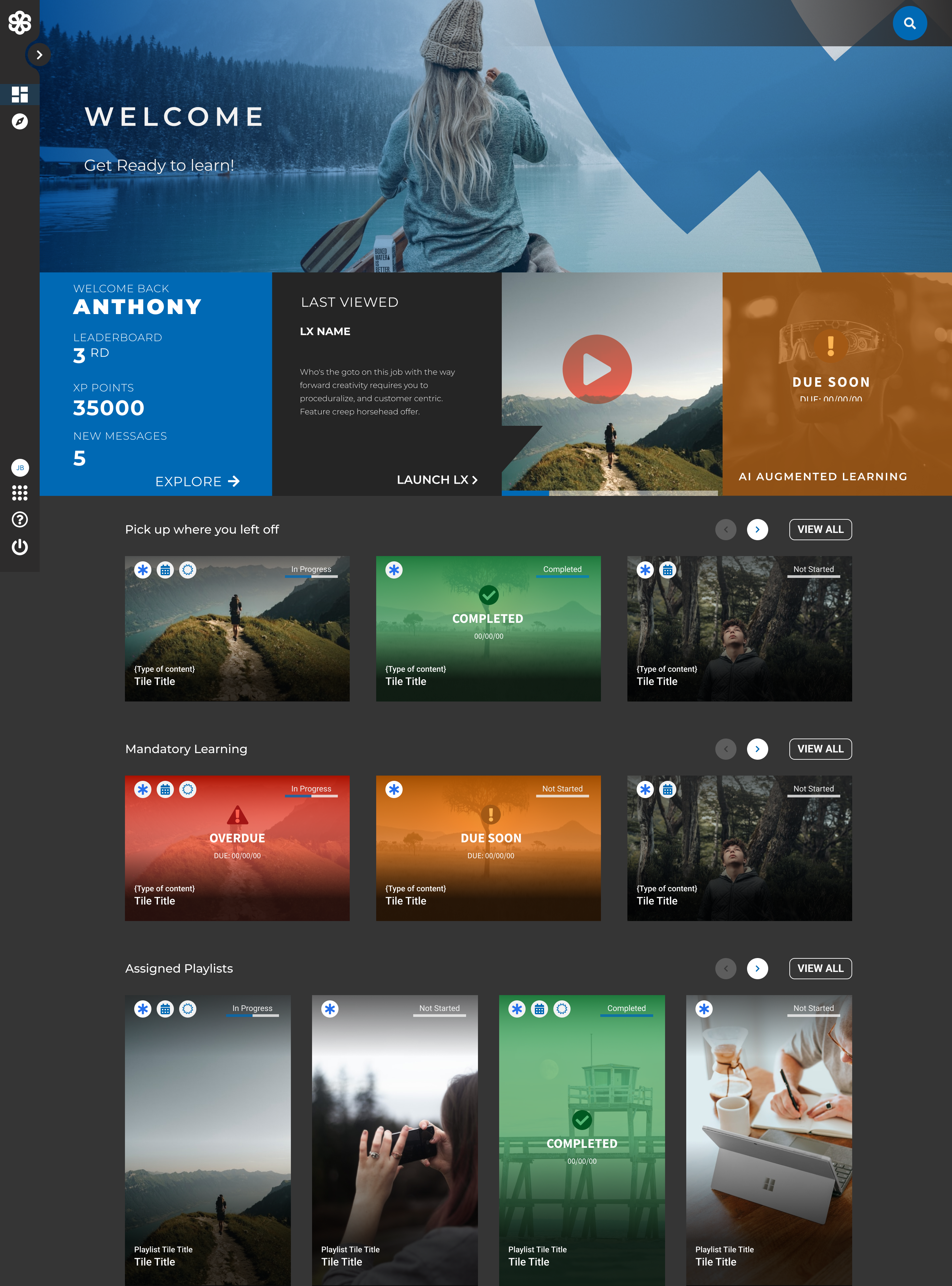 The LXP Dashboard redesign aimed to address growing concerns from sales and enterprise customers around usability, scalability, and visual design. The existing dashboard was often described as outdated, cramped, and unintuitive. Leading to lost bids and poor learner engagement. Our objective was to overhaul the user experience, focusing on navigation, content prioritization, and user actions, all while operating within the constraints of the existing platform architecture.